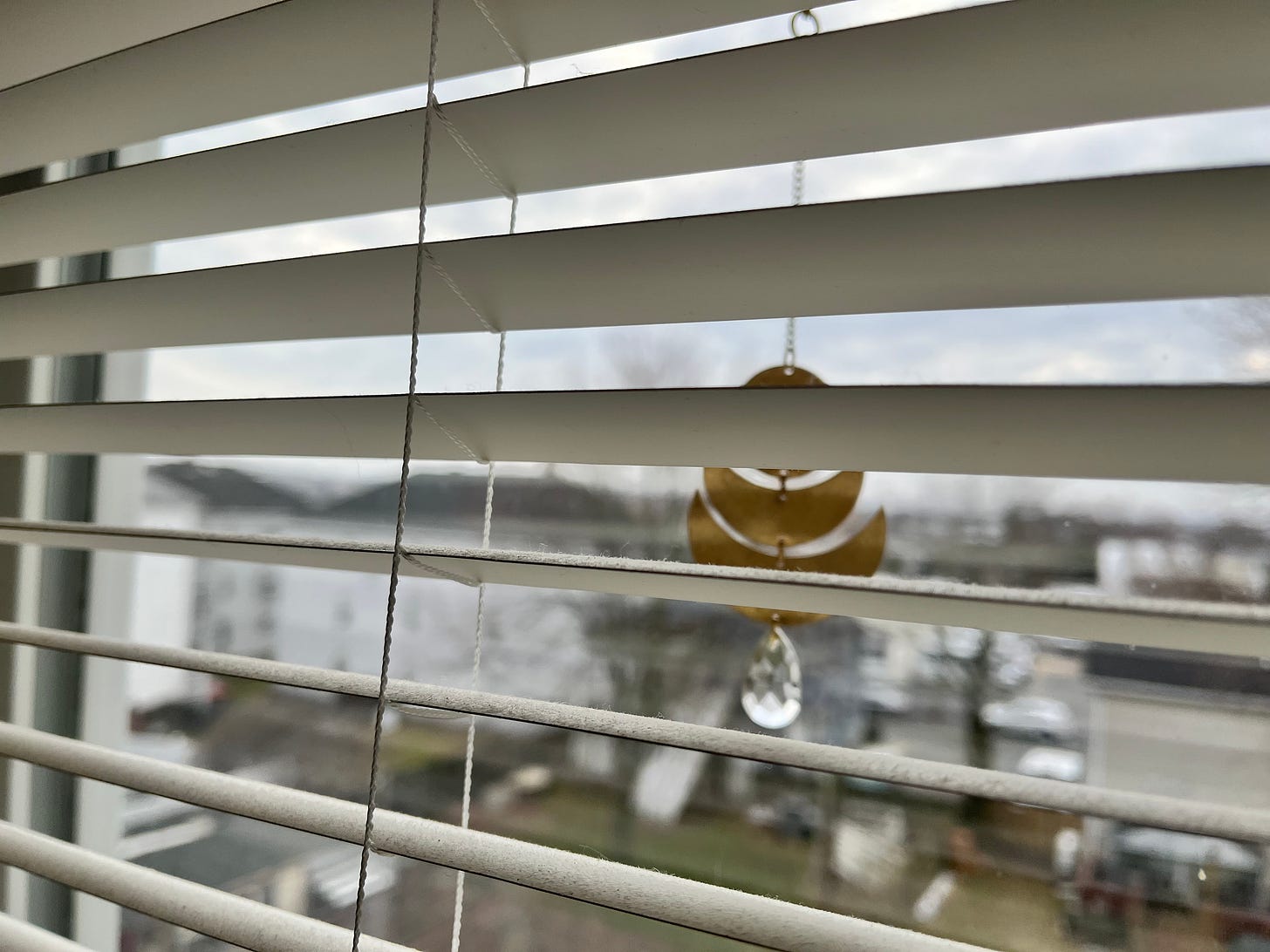 and I donβt have a cute kid story, and to tell the truth, joy feels shy as a forest creature, waking after the last gasp of winter. What can I offer from my hibernation heavy heart, sleepy and only wanting to stay silent in the frosted dark? Then I remember this winter we hung a prism suncatcher up in the kitchen window. Every morning, the eastward light glints off the groaning buses as they wake for the new day, the light caught in the crystal refracts against the wall. Every morning I grind coffee and count rainbows. What is joy if not this? Light showing up as it really is, transfigured sunlight in kettle steam.